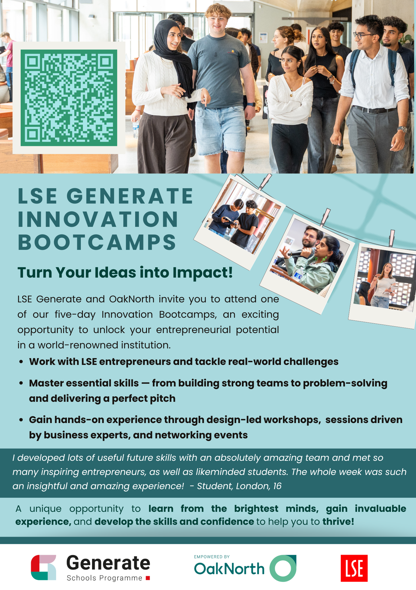LSE Generate invite you to attend one of their five-day Innovation Bootcamps, an exciting opportunity to unlock you entrepreneurial potential in a world-renowned institution.